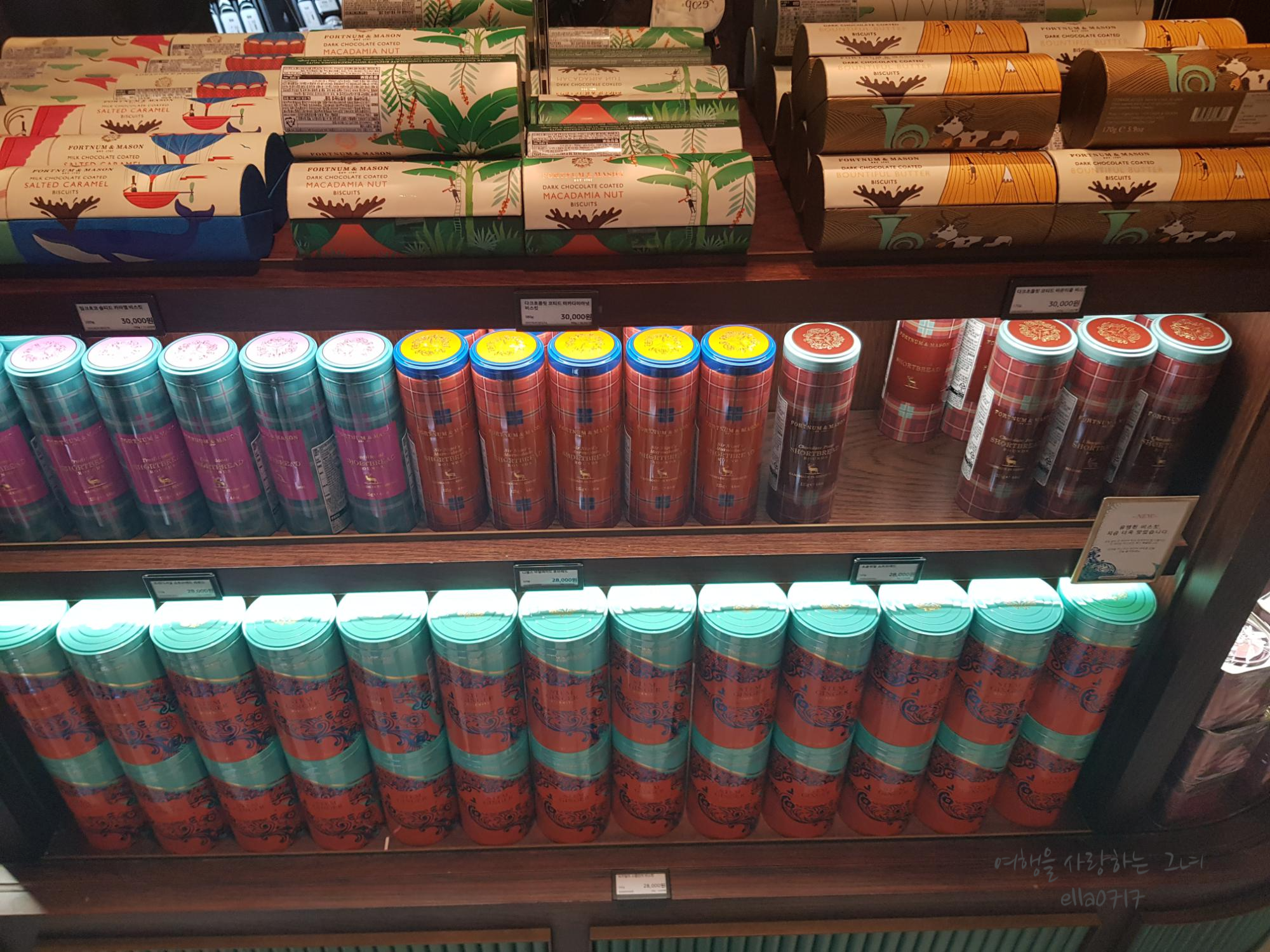 서울 광화문과 삼청동 거리를 한바퀴 드라이브한 후 백화점으로 들어갔는데요. 오랜만에 거리마다 사람들이 꽤 많았고 쇼핑몰 안에도 명절 선물을 고르는 분들이 많더라구요. 떨어진 화장품과 식료품 좀 사고, 지하 식료품관에 있는 영국의 유명한 티브랜드인 포트넘 앤 메이슨 매장에 들어갔어요. 올해부터는 건강 생각해서 커피를 조금 줄이고 차를 마셔야겠다고 다짐했었는데 마침 잘됐다싶었어요^^